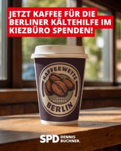 Davon lassen wir uns nicht abhalten. Ab sofort können in meinem Kiezbüro Kaffeepakete abgegeben werden – unabhängig davon, wo sie gekauft wurden. Für jedes gespendete Paket lege ich einen Euro dazu und stelle sicher, dass alle Spenden direkt der Kältehilfe vor Ort zugutekommen.